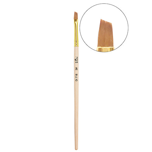 Кисть для дизайну і моделювання нігтів Divia Di718 - №3 (Лепесток) — це скошена кисть, ідеально підходяща для створення плавних дуг і тонких ліній. Її форма дозволяє легко малювати пелюстки та інші елементи дизайну, а також використовувати її для створення фонів і узорів у китайському розписі.